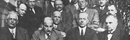 Møde i Helsingfors 1928. I første række fra venstre Carl Holmdahl, Gösta Häiggquist, Fabian Langenskiöld og Patrik Haglund. I næste række P. G. Bentzon, P. Guildahl, R. Faltin, A. R. Klossner, H. Camitz og Kern. Næste række: Harald Nilsonne, P. Giertsen, G. Asplund og T. Kalima. Næste række: Simo Brofelt, Kjell Bergman og Sven Johansson.