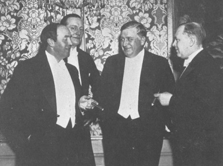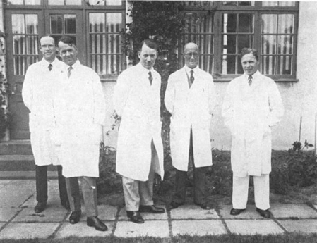 Her ser vi fra mødet i Oslo 1929 i midten Egeberg Giertsen, til venstre for ham Bülow Hansen og mellem dem Sinding Larsen. Længst til venstre aner man Henning Waldenström og længst til højre Bülow Hansens 1. reservelæge, Bjarne Mørck.